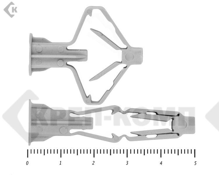 Дюбель-бабочка крепежное устройство, предназначено для крепления к гипсокартону, ГВЛ, ДСП и другим материалам (толщиной 10-12 мм) светильников, полок, плинтусов, выключателей, кабельных каналов.
