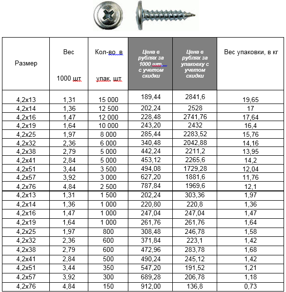 Стоимость саморезов зависит от нескольких параметров: